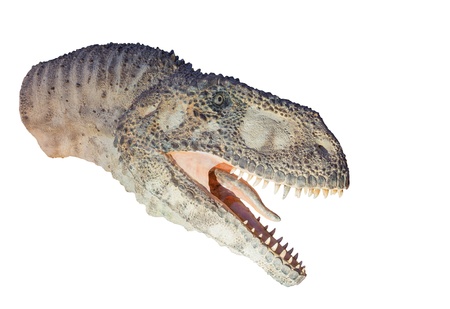 Model of a dinosaur. open jaws. Dinosaur isolated on the white background. close-up
