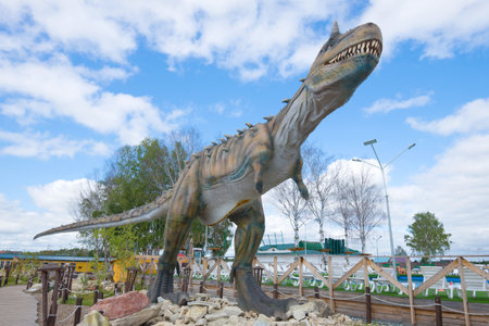 KIROV, RUSSIA - AUGUST 30, 2017: A sculpture of a predatory dinosaur - carnotaurus close up. Theme children's park