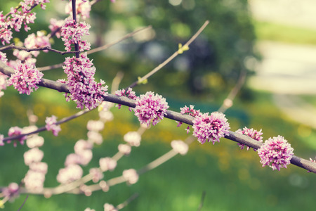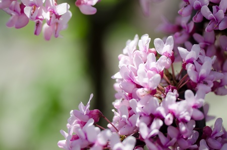 Cercis canadensis Canadian crimson, pink flowers macro, background