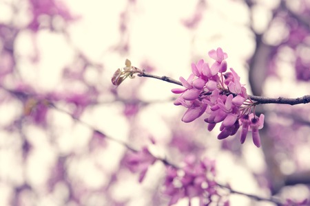 Abstract shot of Eastern Redbud Tree, Cercis Canadensis, native to eastern North America shown here in full bloom in south central Kentucky. Shallow depth of field.
