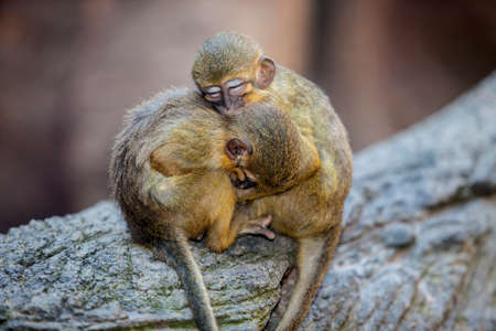 Little funny gabon talapoin also known as the northern talapoin, Miopithecus ogouensis