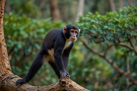 A monkey sits on a branch in the forest