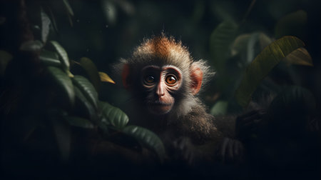 Adorable monkey in lush rainforest foliage