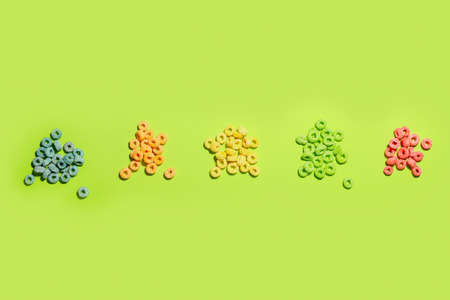 Multicolor cereal rings as food background. Colorful breakfast food.