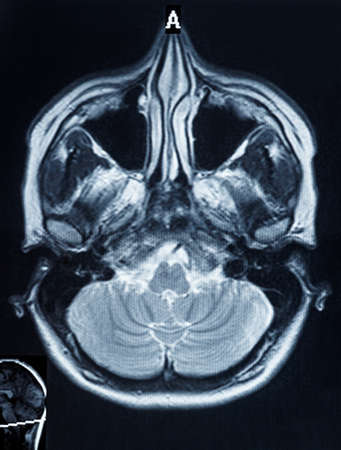 MRI brain scan sagittal T1W plane for detect Brain diseases sush as stroke disease, Brain tumors and Infections.