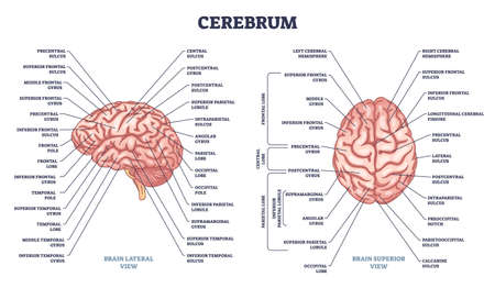 Cerebrum structure and human brain sections and parts anatomy outline diagram