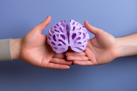 A woman's hands hold a vibrant human brain model, reflecting the diversity of neurology, mental capacities, and human intelligence