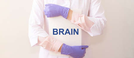 BRAIN message word on a paper in doctor hands. mental health concept.