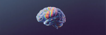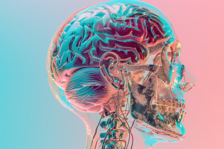 This stunning 3D visualization showcases a human brain with vibrant neural pathways, highlighting complex structures and illustrating cognitive functions and connections.