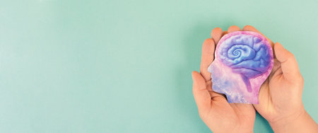 Hands holding paper brain.