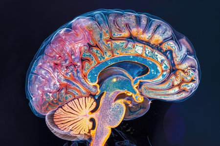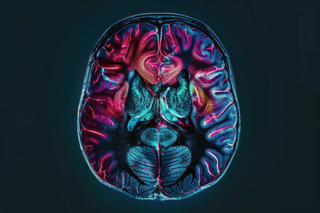 Colorful brain MRI scan for medical neuroscience research and diagnostics