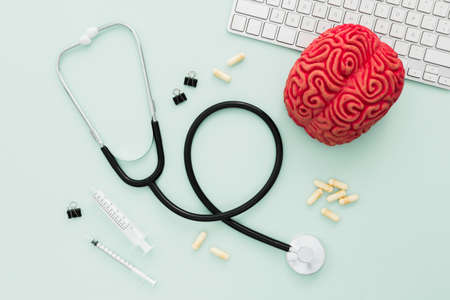stethoscope brain desk. High quality photo