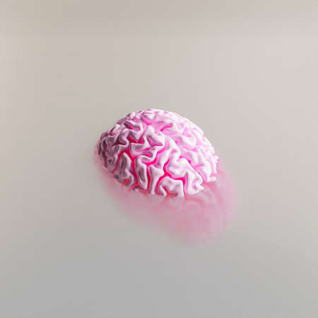 minimalistic scene of a pink brain submerged in a thick liquid. 3d render