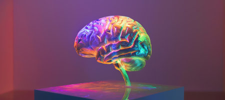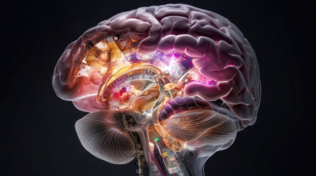 A focused portrait of a brain scanned with imaging technology showing vibrant hotspots that represent realtime neural feedback linked to emotional responses and decisionmaking.