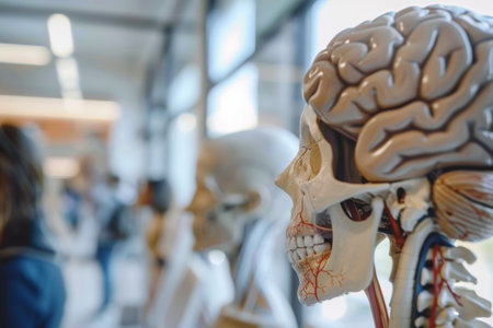 Close-up of a human brain model