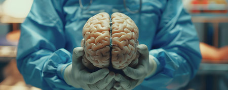 Medical professional holds a detailed model of a human brain