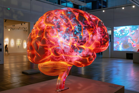 An art creation where biology and technology are combined in a special installation with brain sculpture