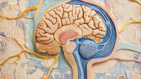 This detailed cross-section of the human brain illustrates its anatomical features, making it ideal for educational purposes in neuroscience and medicine.