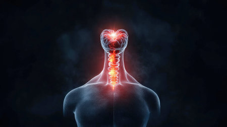 Hernia of the cervical spine, neck pain, spondylosis of the intervertebral disc, brain diseases, health problems concept, AI Generated illustration