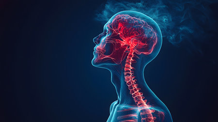 A captivating digital depiction of the human nervous system, highlighting the brain and spinal cord with glowing neural connections, perfect for educational materials.