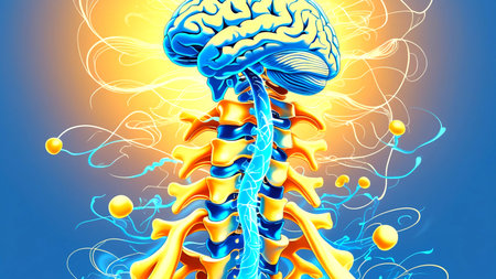 Abstract and artistic depiction of the spine with elements of science fiction and modern digital art illustration.