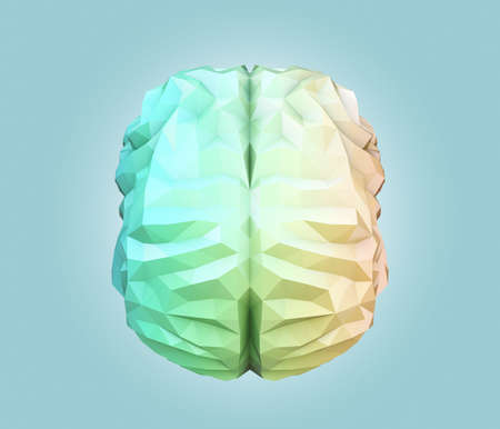 Front view of low poly brain model. Concept for artificial intelligence. 3D rendering image.