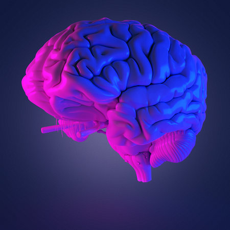 Human brain isolated on a colored background. Anatomical 3D model of human brain for medical students. 3D rendered model
