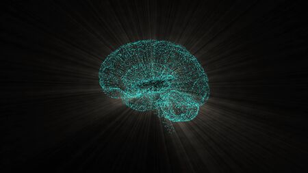3D rendering of a computer model of a human brain. The concept of artificial intelligence and visualization of data on the structure of the brain from a medical tomography apparatus