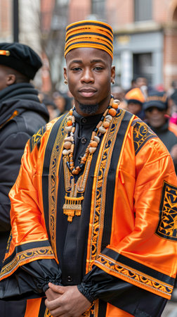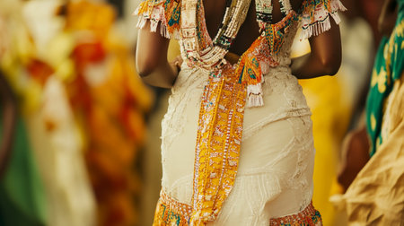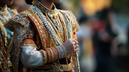 A captivating display of traditional clothing featuring intricate designs and ornate accessories at a vibrant cultural event celebrating artistry and heritage.
