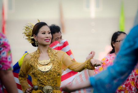 Tenggarong, Indonesia-August 27th,2016. Traditional dance of dayak people with traditional costume participated in erau International folk art festival on August 27th, 2016 in tenggarong, Indonesia.