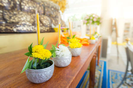 candles set for Buddhist worship Buddha.-solf focus , Thailand