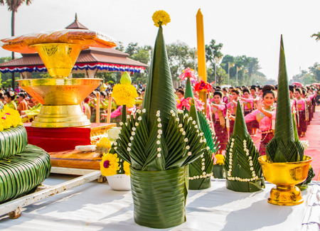 NAKHON PHANOM ,THAILAND-OCTOBER 8: Banana leaf decorated to worship Pratat Pranom pagoda on 8 October 2014 at Nakhon Pranom ,Thailand.Pratat Pranom pagoda is very important place for buddhism.