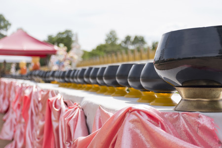 Monk's alms-bowl in temple, stock photo