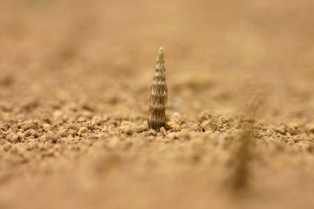 Beautiful sea shell in the sand. 3d rendering. Computer digital drawing.