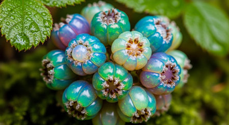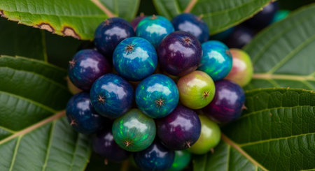 Discover a stunning close-up of vibrant berries in a natural setting, showcasing intricate textures and a playful mix of colors on a branch. Perfect for nature lovers.