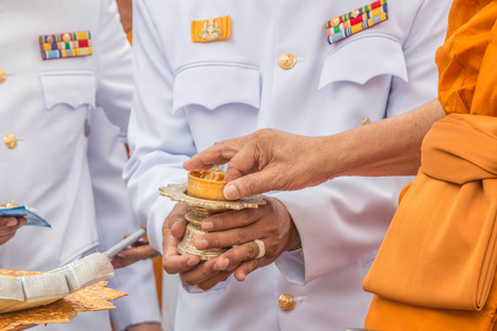 The ceremony of pouring water is one of the traditional Thai wedding.