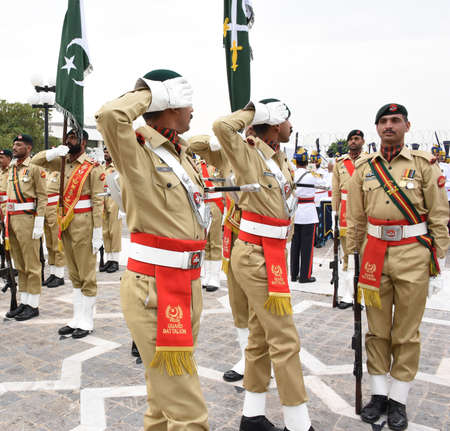 Islamabad / Pakistan - November 3, 2015: Guard of Honor Battalion of the Pakistan Army, during the official ceremony at the Aiwan-e-Sadr Presidential Palace of the President of Pakistan.