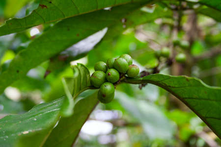 Macro closeup shot a cluster of wild fruit on the tree in the rainforest. selective focus shot