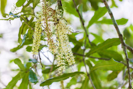 The flower of teak tree with a natural background. Indonesian called it jati and use the leaves as food wrappers and the tree as furniture