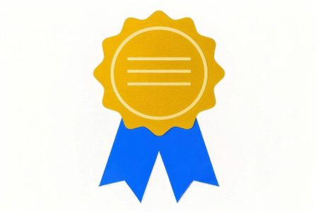 Gold badge with blue ribbon material