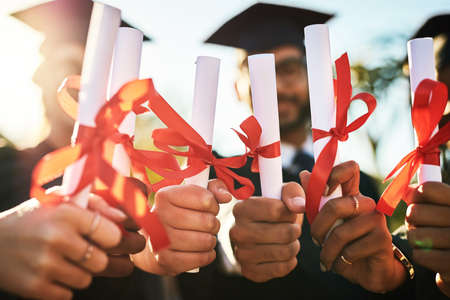 If you can dream it, you can do it. a group of students holding their diplomas together on graduation day.