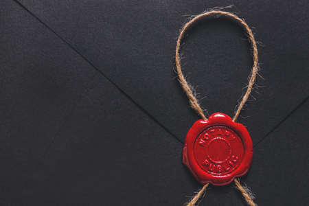Envelope with notary public wax seal, closeup
