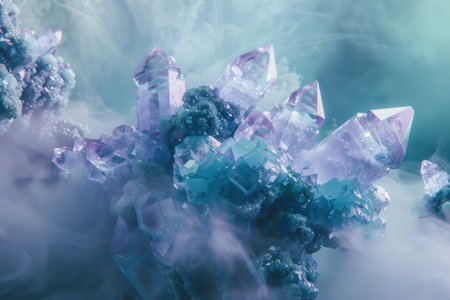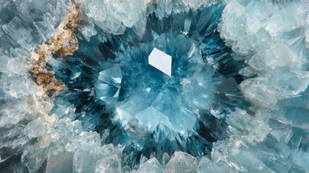 Blue crystal structures captured in detail showcasing the intricate patterns of synthesis in chemical processing. Generative AI