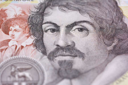 Close-up view of an ancient Italian banknote, one hundred thousand lire, Rome, February 2020