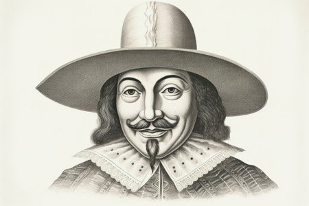 A graceful musketeer dressed in period garb, displaying courage and gallantry in a captivating Renaissance environment