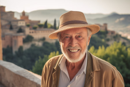 Portrait of happy senior man in Tuscany, Italy.
