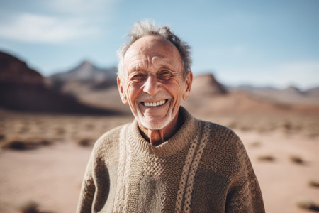 Portrait of a smiling senior man in the middle of the desert