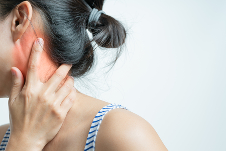 Woman with pain in neck. Concept woman suffering from pain in neck.