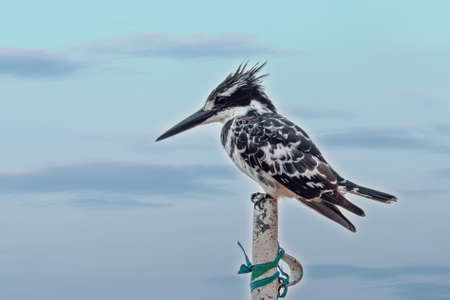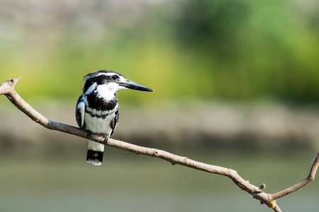 Pied Kingfisher perched on a branch (Ceryle rudis) in nature