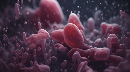 Macro shot of microbes cells and bacteria, 3d microscopic virus close up, abstract background or fantasy wallpaper, by ai generative